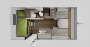 • Slapen: opklapbare stapelbedden met EvoPore-matrassen, afscheidbare slaapruimte, dimbare leeslampjes, veilige ladder, oprolbare valbeveiliging